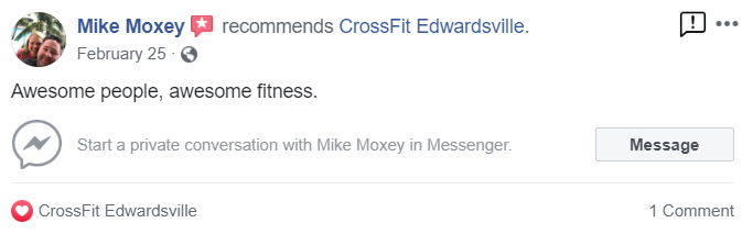 From day one, I felt like part of something bigger than just a WOD. CrossFit Edwardsville is exactly what I was looking for…a bold statement, but true.